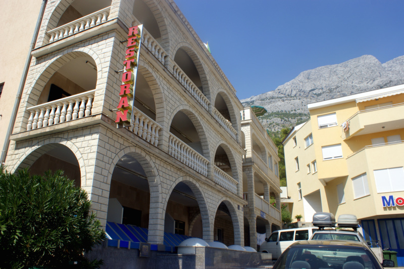 Oczywiście samymi pięknymi widokami człowiek nie żyje i gdzieś trzeba spać ;). Spać... właśnie. Willa Marić sąsiaduje z mechanikiem samochodowym (chyba jedynym w mieście), który pracuje 24h. Jakby tego było mało to śmieciarka jeździła wczesnym rankiem. Na szczęście ja wiem to z relacji innych, bo sama mam na tyle twardy sen, że walenie w drzwi i okna przez bite pół godziny mnie nie obudzi :). Co do samego pokoju to gdzieś na forum się pojawiło, że warto wziąć ten na parterze, bo jest tam na tyle chłodno, że nie trzeba klimatyzacji (dodatkowo płatna). Nikt niestety nie napisał, że jak się ma pokój na parterze przy wejściu to dzieli go ogrodzenie, które łatwo przejść i dostać się do pokoju czy po prostu zabrać rzeczy z balkonu (lękajcie się jeżeli w Marić dostaniecie klucz z numerem 101))... Chyba nie muszę mówić, do którego trafiłam? Jednak nie było źle, nic mi nie zginęło (choć może barykada materacowa to sprawiła ;)). Szczęście sprzyjało nawet jeżeli chodzi o sąsiadów- obok mieszkali przesympatyczni Czesi (także codziennie obowiązkowe Dobrý den :>- wspominałam już jak bardzo lubię czeski?). Nie miałam na co narzekać, gdyby nie sprzątaczka. Ja nie jestem z tych, którzy zostawiają wszechobecny syf (przynajmniej na wakacjach), ale dwie rolki papieru na dziewięć dni na trzy osoby? Zanoszenie brudnych ręczników do pokoju sprzątaczki, żeby dostać nowe? Na początku naiwnie wierzyłam, że ludzie zostawiają nie wiadomo jaki brud w pokojach i dlatego do mojego dostałam się po 14 (na 12 pokoi miała czas od 9 do 14...). Cóż... potem się okazało, że plaża ważniejsza jak praca, ale polako polako na wszystko mamy czas ;). Jestem w stanie zrzucić winę na nieobecność właściciela, przez co (tak myślę) zostało także zamknięte bistro i trzeba było kopytkować na śniadania i obiadokolacje do Belmondo.